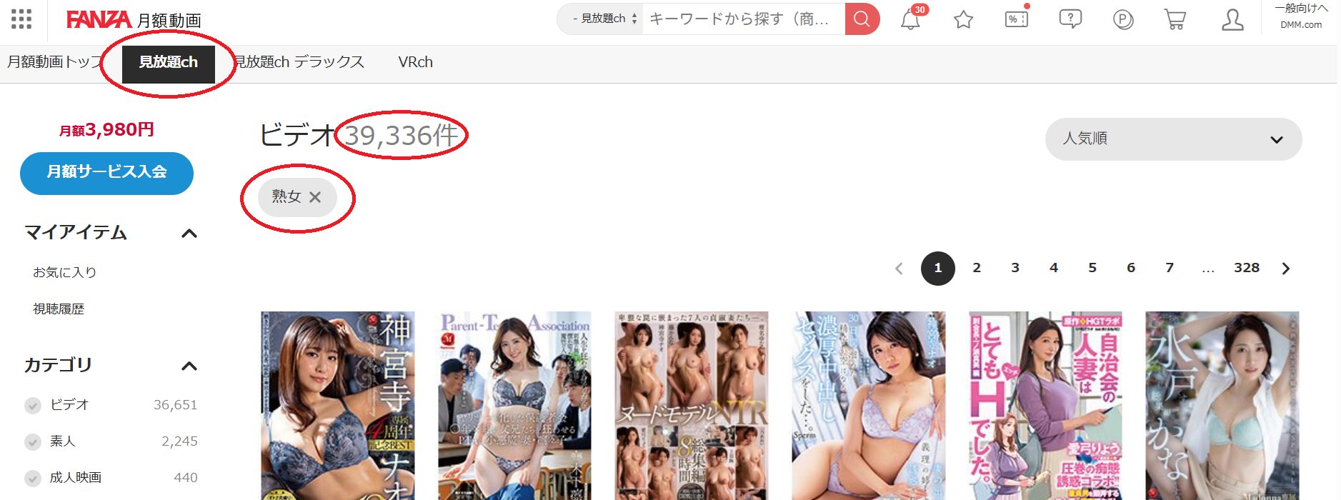 ・ 見放題ch:月額3,980円(税込)